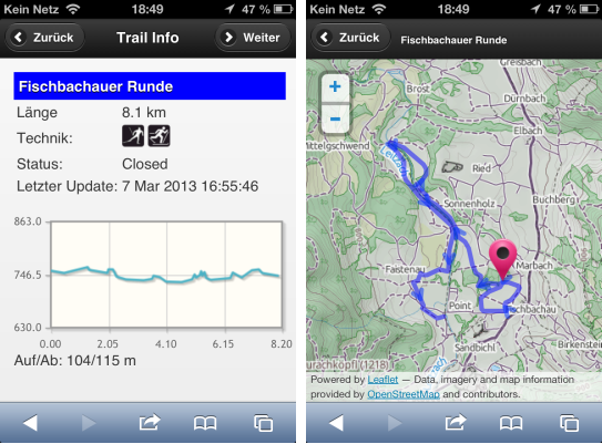 Für mobile Browser stehen ab sofort eigene Seiten für Trails zur Verfügung: http://xctrails.org/mobile/trails.html