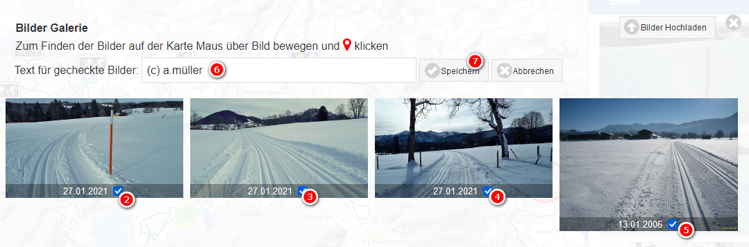 In den nächsten Dialog zieht Ihr einfach Eure Bilder dieser Loipe oder Skitour oder verwendet den Upload Knopf.